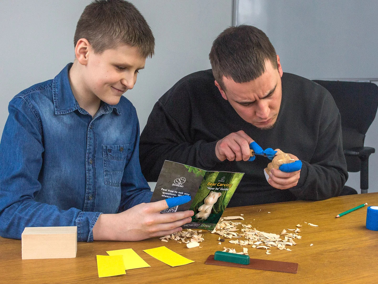 נשמע מרשים, נכון? נסה את ערכת הפתיחה שלנו וגלף דמות של דוב במהלך סוף שבוע. כן, אתה יכול לעשות את זה בעצמך!
